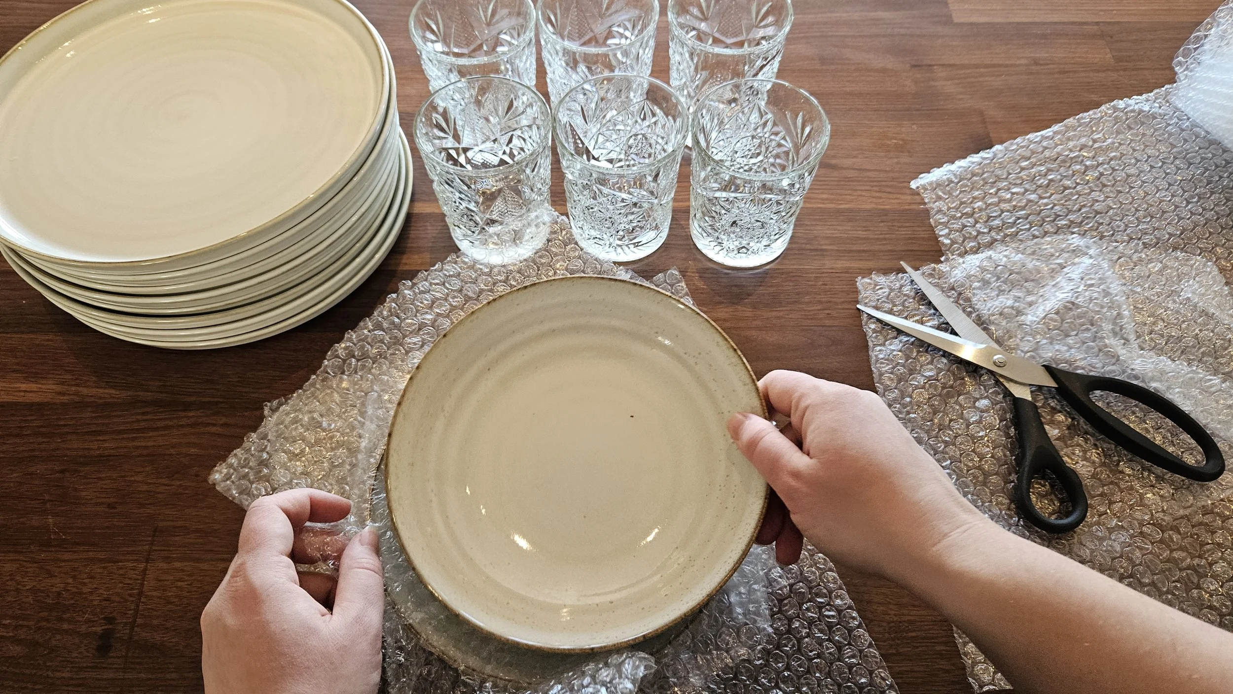 Återigen - om du tar hjälp med nedpackningen underlättar det nu om du har lagt saker “lika med lika”. Alla hushållsmaskiner i ett skåp. Alla engångsartiklar i ett skåp.